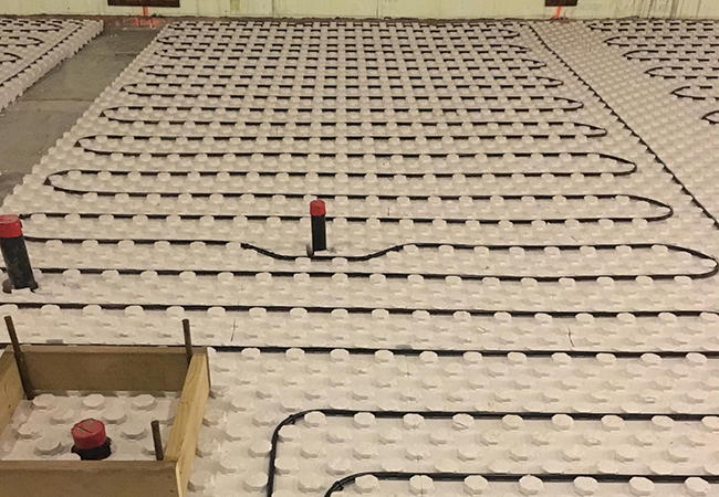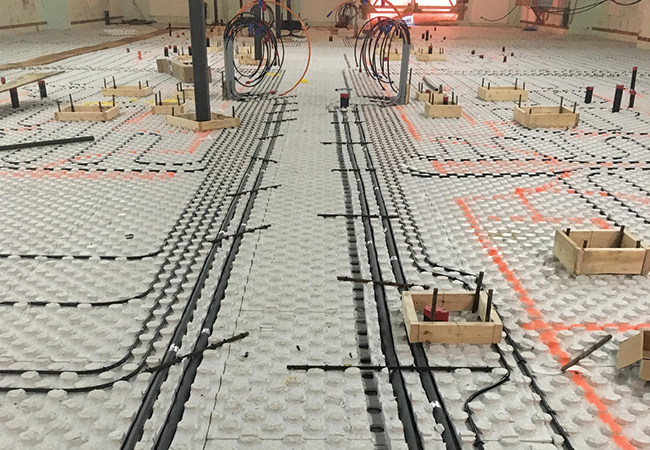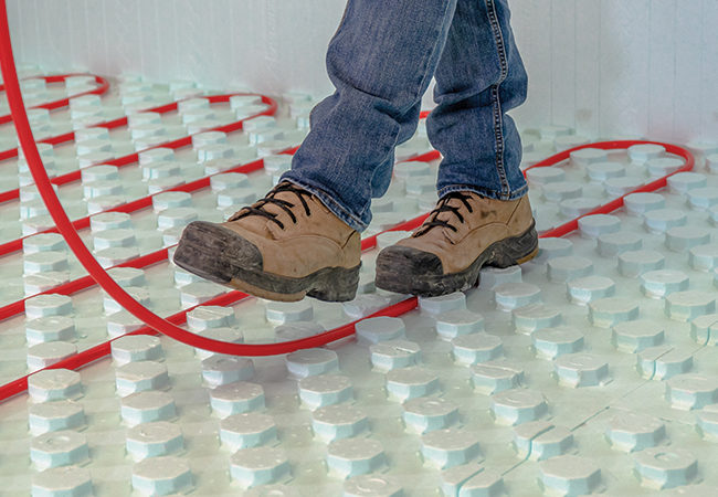 HYDROFOAMMC offre aux installateurs un produit d'isolation léger de haute densité en polystyrène expansé ( EPS) pour les planchers à chauffage radiant qui augmente la vitesse d'installation. Il se coupe facilement  pour suivre n'importe quel angle ou rayon tout en offrant une valeur isolante de R10.