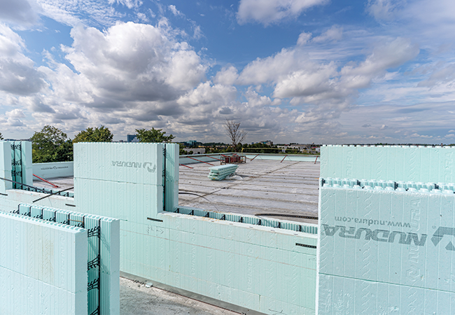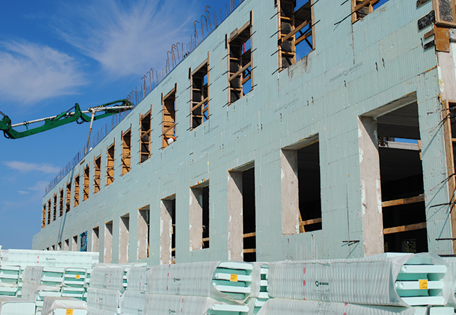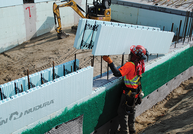 Le nouveau coffrage XR35* possède une valeur-R de R-35** avec toutes les caractéristiques de notre aggloméré de CIB standard. Les panneaux de PSE d’une épaisseur de 4 po (102 mm) et les lattes de fixation de conception nouvelle rendent ce coffrage plus écoénergétique avec la même technologie légère! Les lattes de fixation sont 5/8 po (16 mm) sous la surface et portent une marque en forme de diamant qui facilite et accélère la fixation des finis intérieurs ou extérieurs sur le chantier.